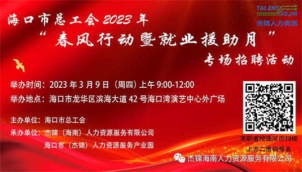 6月24日上午9時-12時,由??谑旋埲A區人力資源和社會保障局、??谑校埲A)人力資源服務產業園主辦,杰...